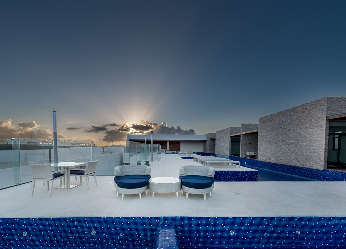 From its exclusive roof you can enjoy the beautiful sunrises with the best view of the Caribbean Sea, as well as being the ideal place to hold meetings as it has a Sky bar. Enjoy the security and comfort that Cruz Con Mar Condos offers you.